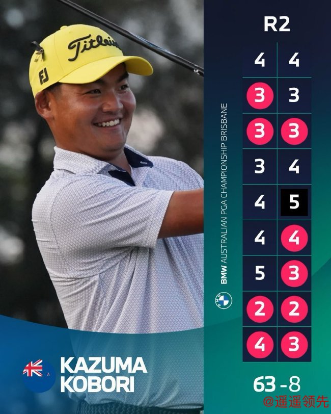 北京时间11月28日,在BMW澳大利亚PGA锦标赛次轮比赛中,新西兰选手小堀一磨(Kazuma Kobori)于最后四洞连续抓鸟,单轮交出63杆,低于标准杆8杆。本轮他共捕获9只小鸟,仅吞1个柏忌,以两轮总成绩132杆,低于标准杆10杆的佳绩占据领先榜首位。作为欧巡赛新人,小堀一磨跻身中东两场季后赛,现在信心十足问鼎娱乐,当比赛连续第二天延迟的时候,日裔选手在皇家昆士兰高尔夫俱乐部领先3位选手一杆:亚太业余锦标赛前冠军丁文一以及澳大利亚本土选手安东尼·奎尔和布瑞特·兰金。
