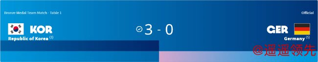 这样,3号种子韩国女团以总比分3-0横扫5号种子德国女团,夺得铜牌。